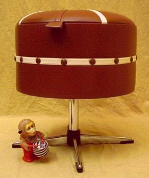 Drehhocker aus den 70er Jahren mit raffiniertem Stauraum! Unter dem