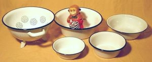 Typische, alte Schüsseln sind meist weiß mit blauem oder schwarzen Oberrand. Je dicker das