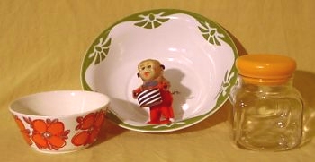 Und nochmal das Muster in invers auf den zwei Bechern (links in dünn aus den 70ern,