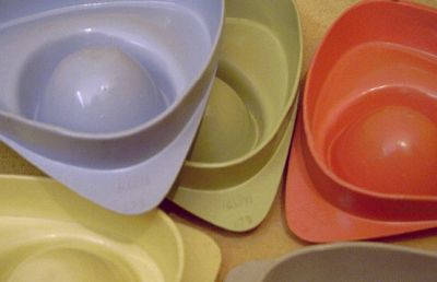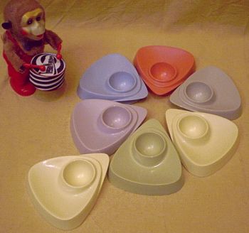 Die Eierbecher in dreieckiger Form aus Kunststoff gibt es in