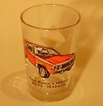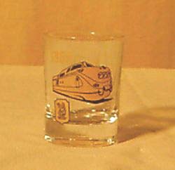 Schnapsglas mit einer Lok im amerikanischen Stil