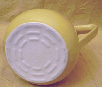 Dieses hellgelbe Kännchen aus den 50ern ist innen wie auß hellgelb und hat ein Fassvermögen von