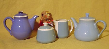 Modell: "Z-D Renate". Und rechts ist eine kugelige, himmelblaue Teekanne