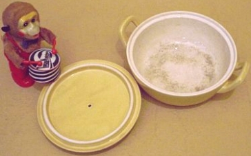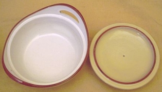 zum Erhitzen kleiner Mengen an Butter, beides feuerfeste, hellgelbe Keramik von VILLEROY & BOCH.