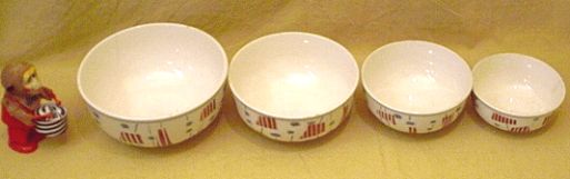 Das Schalenset nebeneinander: Das Dekor wird mit jeder Schale kleiner,