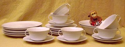 umfasst je sechs Essteller, Dessertteller, Suppentassen mit