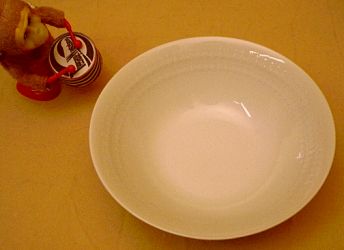 links: Der Essteller hat nur randlich das aufgelegte Strukturmuster.