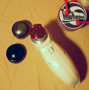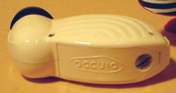 Kunststoffkorpus im stomlinienfrörmigen Design der frühen 50er Jahre. Er passt mit