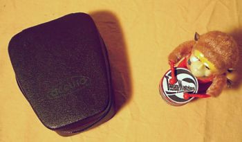 Ledertasche mit dem geprägten "ACCURA" Schriftlogo.