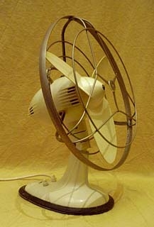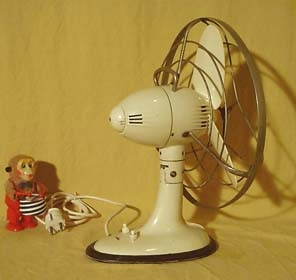 der Ventilator kippbar. Zwei Geschwindigkeiten sind einschaltbar und wählbar an den weißen