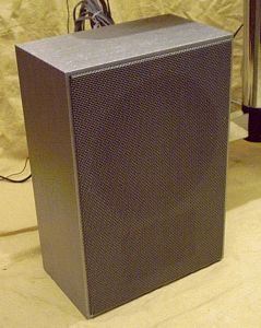 links: Die silberfarbene 2-Wege Box kann senkrecht wie waagerecht aufgestellt werden,