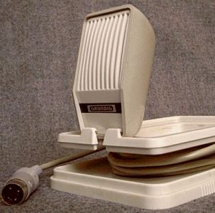 und einen Ständer für das lichtgraue Mikrofon. Das Mikrofon kann aber auch ganz