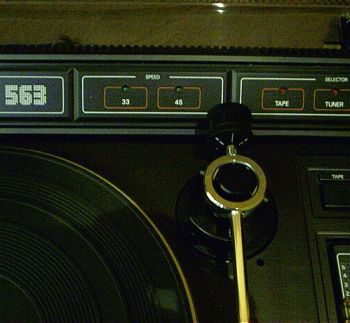 Links vorne das schwarze Plastikhebelchen für die Geschwindigkeit (33 - 45 upm)