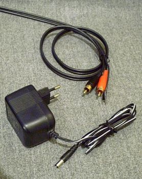 Vergoldete Cinch Stecker, Erdungskabel und externes Trafo-Netzteil