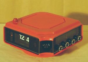 Auf der einen Seite die beleuchtete Klappzahlenuhr